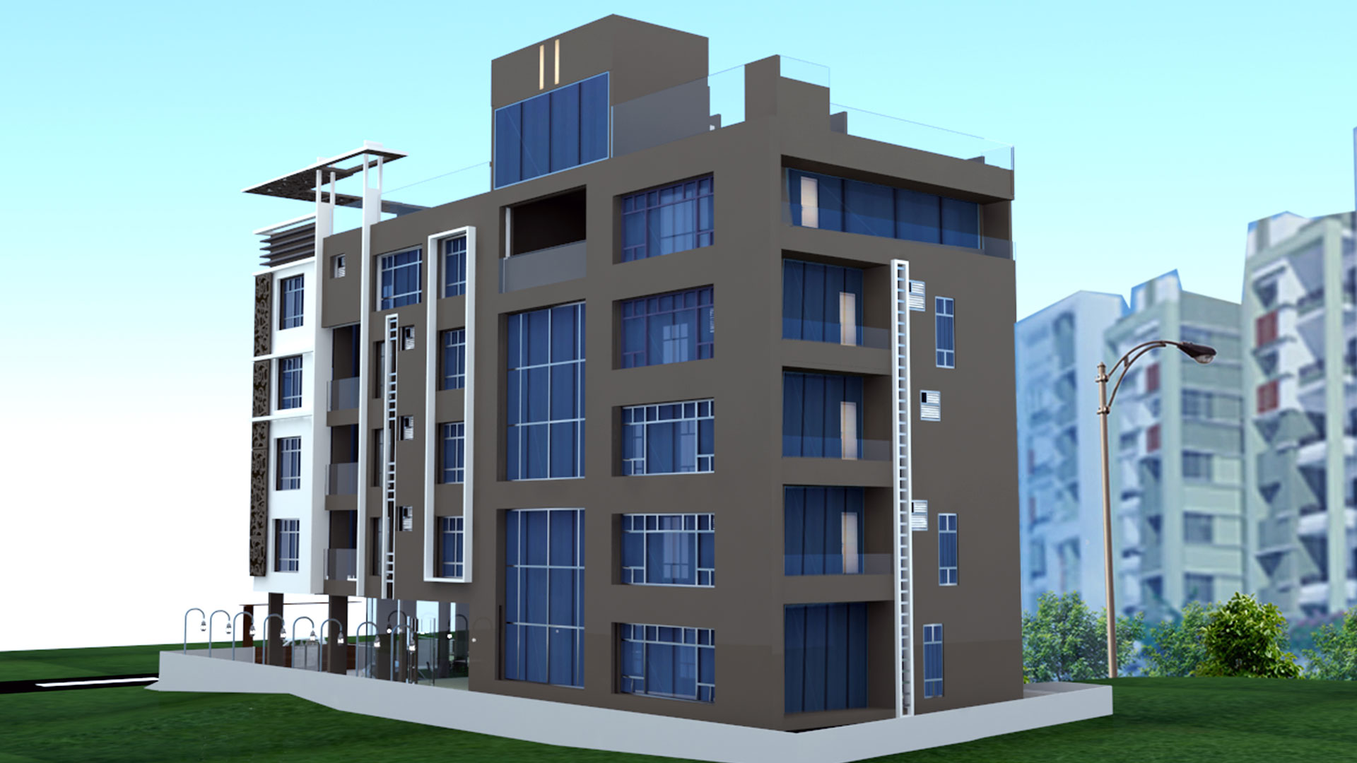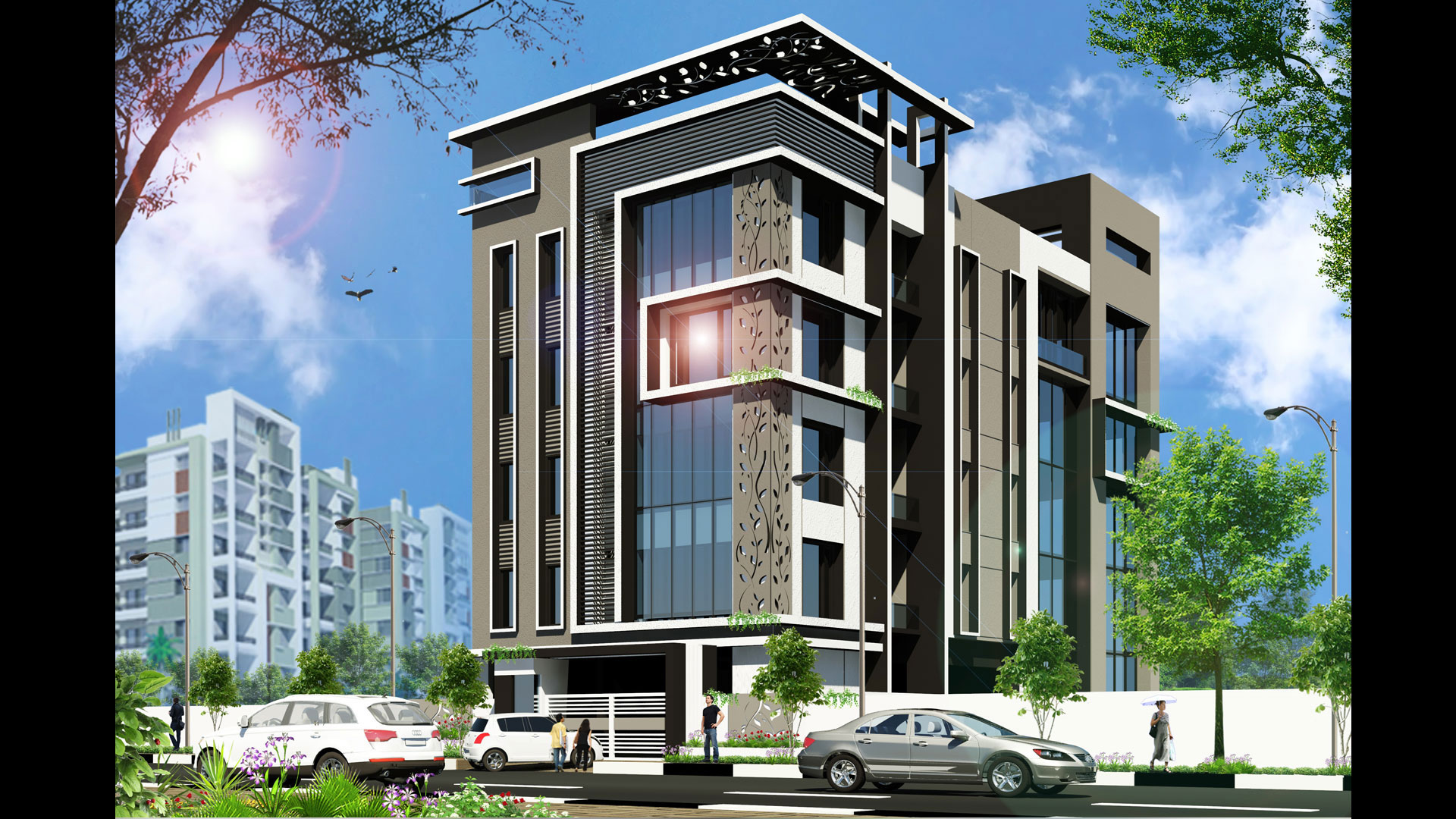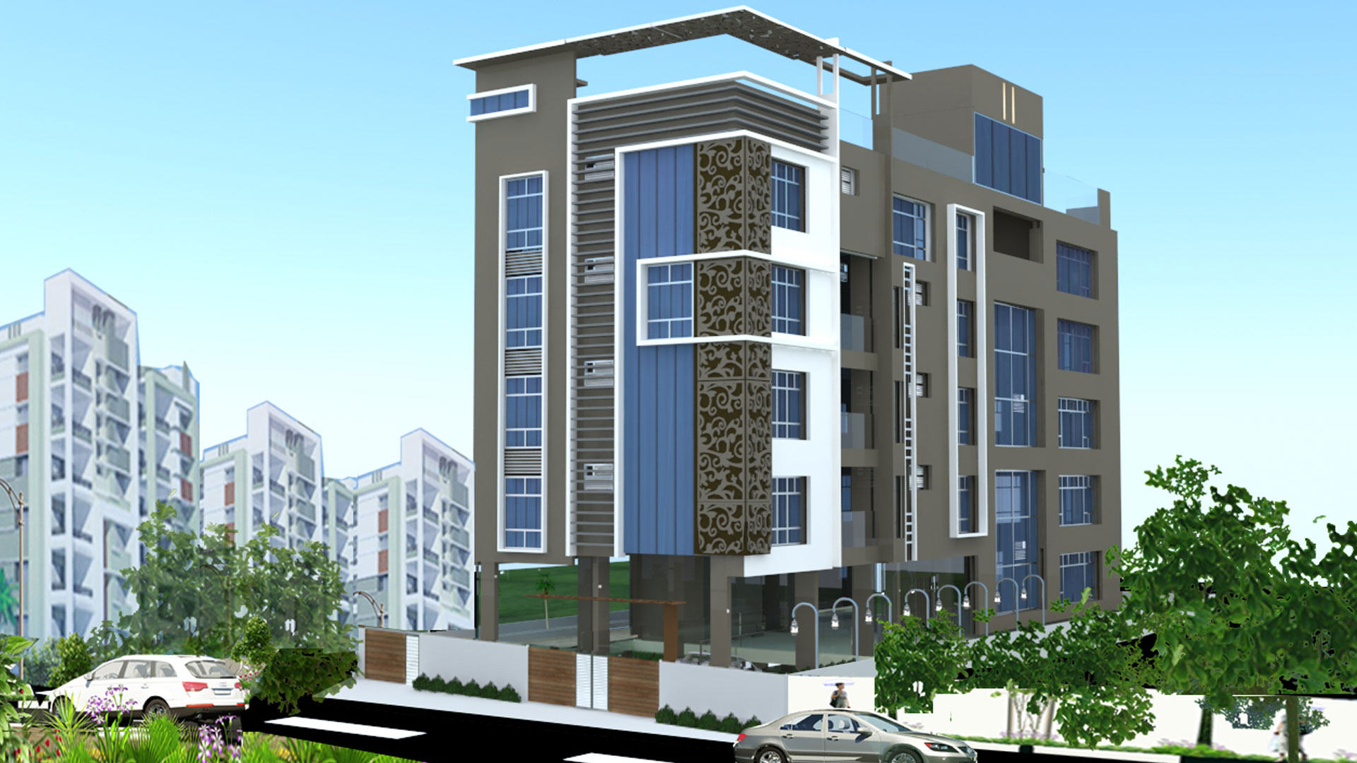 A high-end apartment building situated in an elite residential area, Nandagiri hills in Hyderabad, India. The form of the building is influenced by climatic factors: protecting the interiors from the harsh sun and having natural ventilation. The South and West façade of the building have double walls in order to naturally cool the building during the hot summer months. Spatially the apartments are based on the Vastu layout with excellent views of the city in order to capitalise on ultimate luxury.
