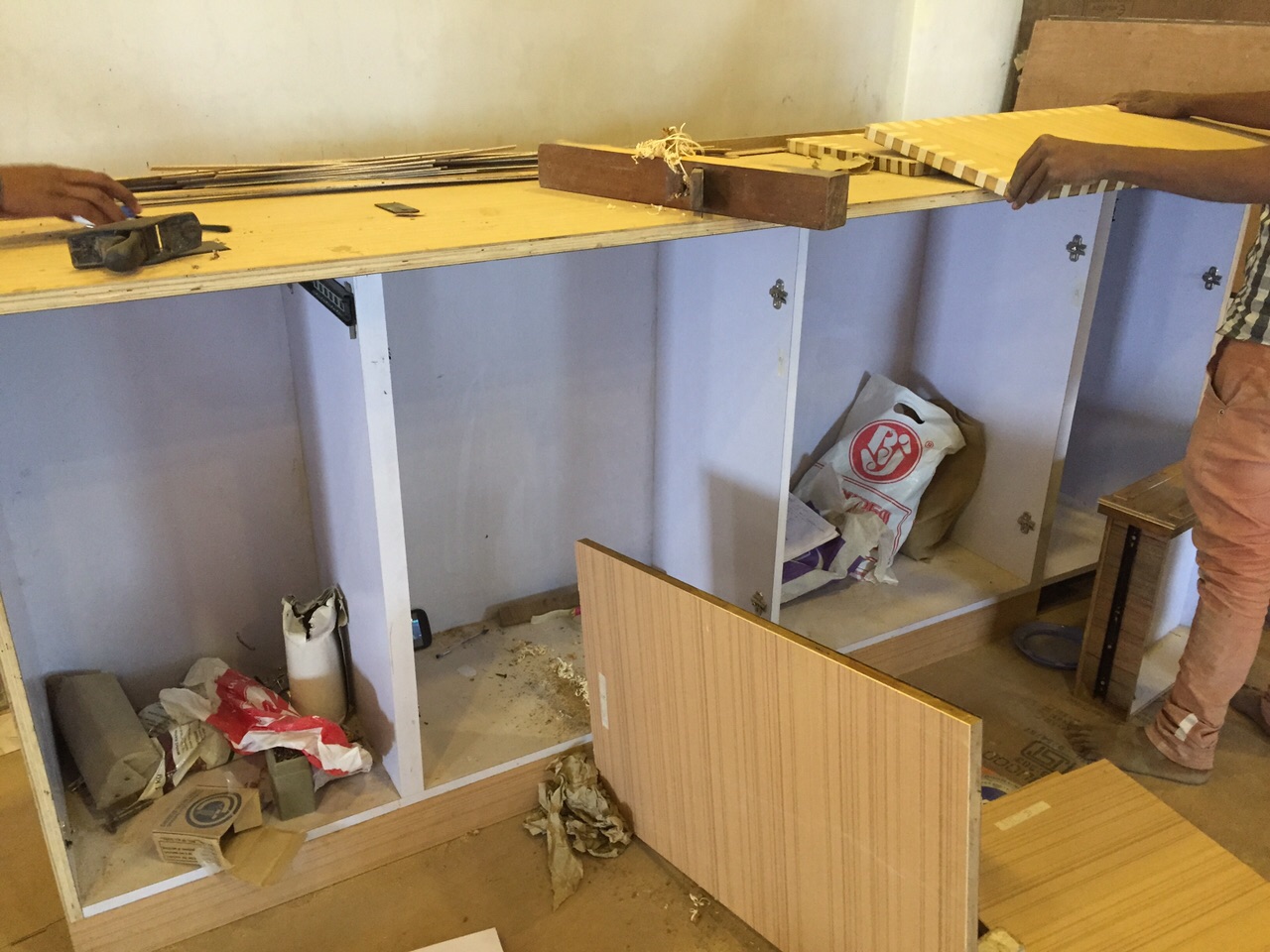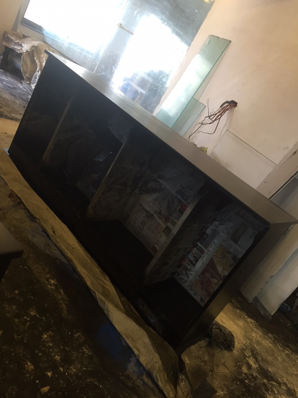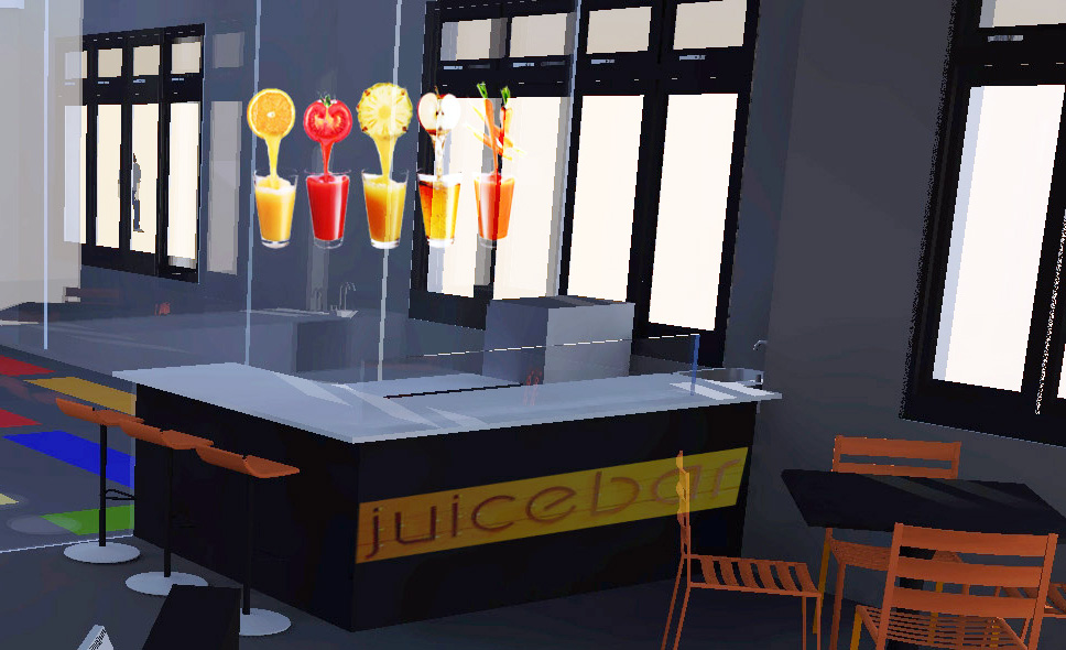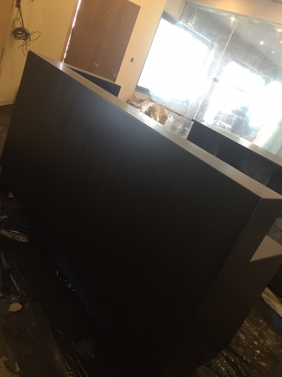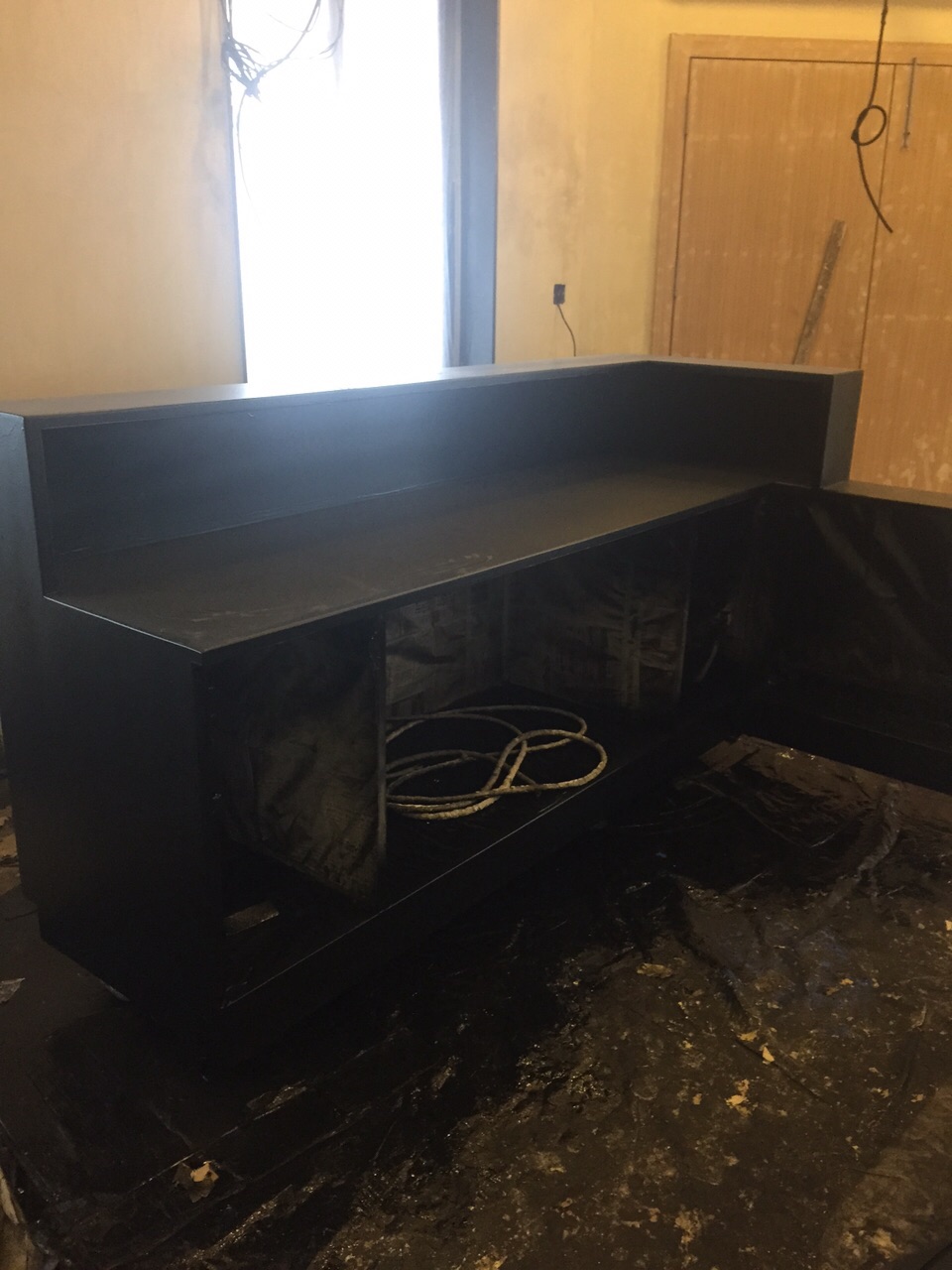 Custom designed solid surface Juice bar made with plywood and black acrylic exterior finish