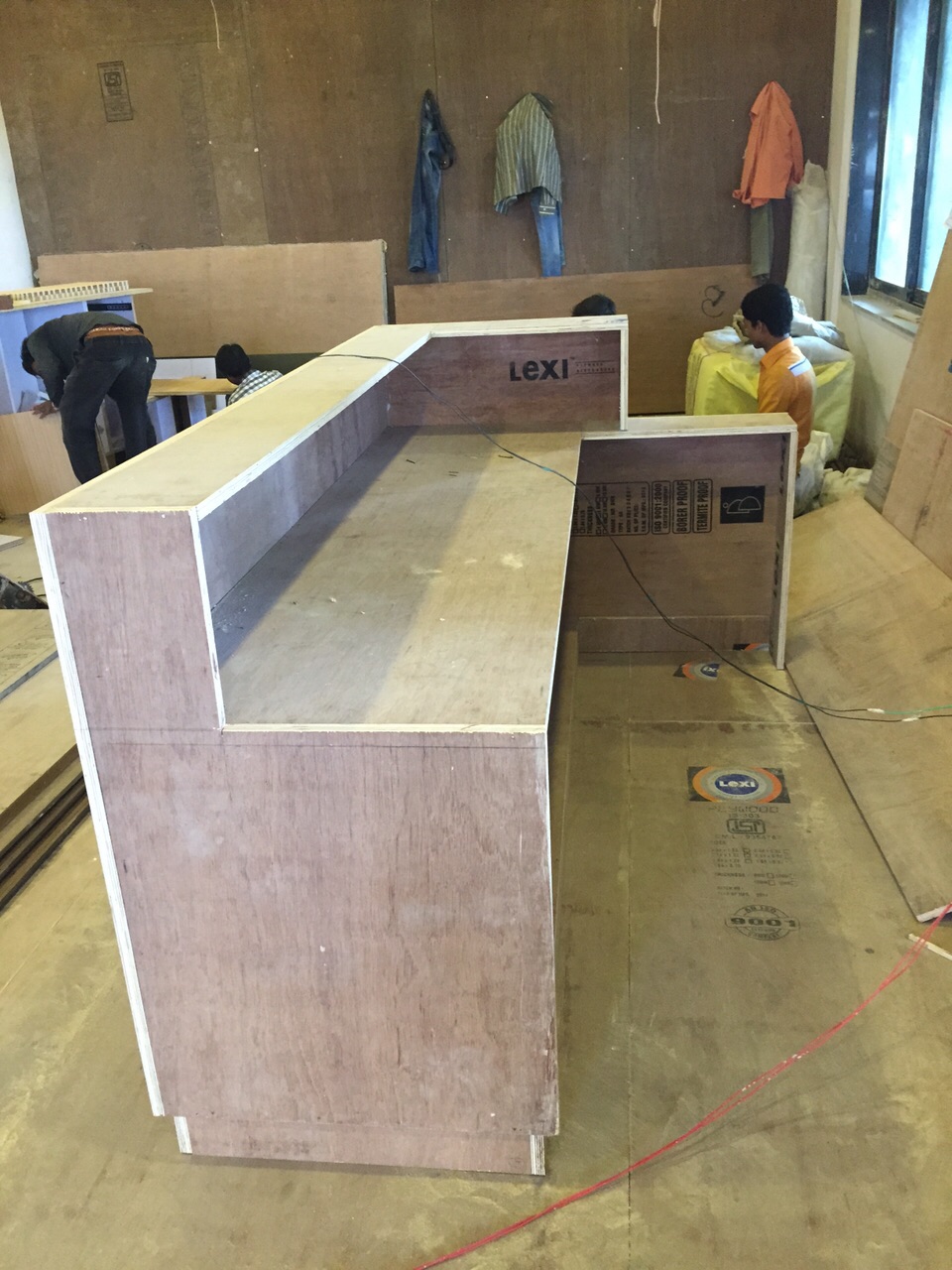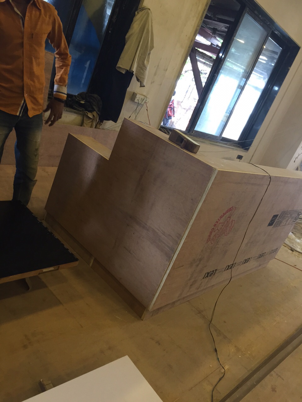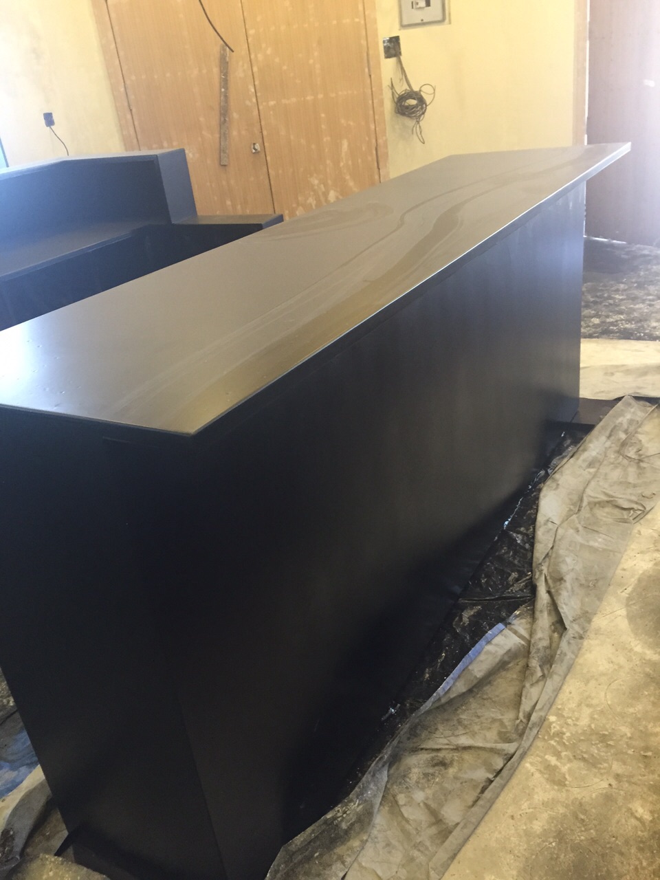Custom designed solid surface Reception desk made with plywood and black acrylic exterior finish