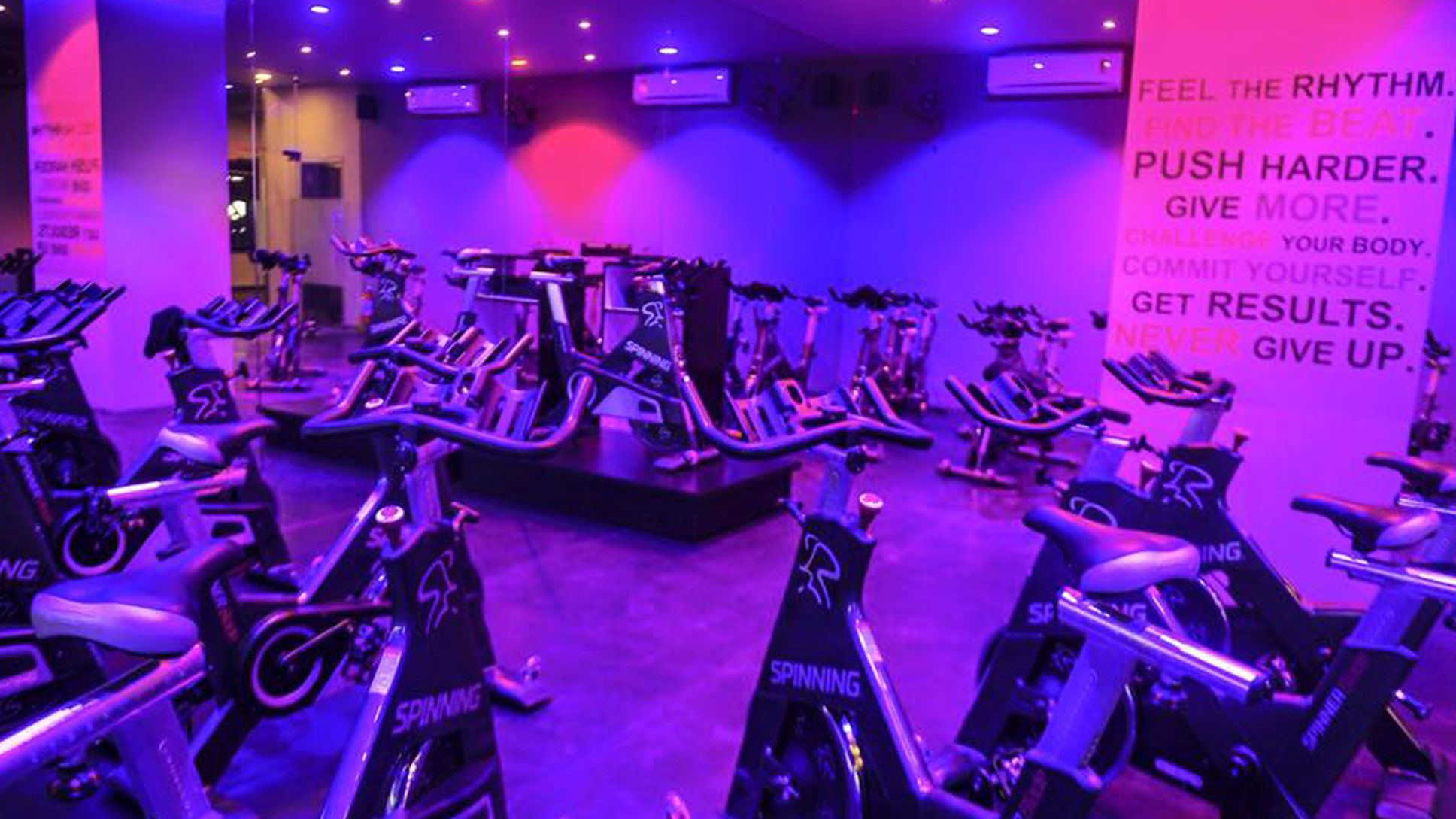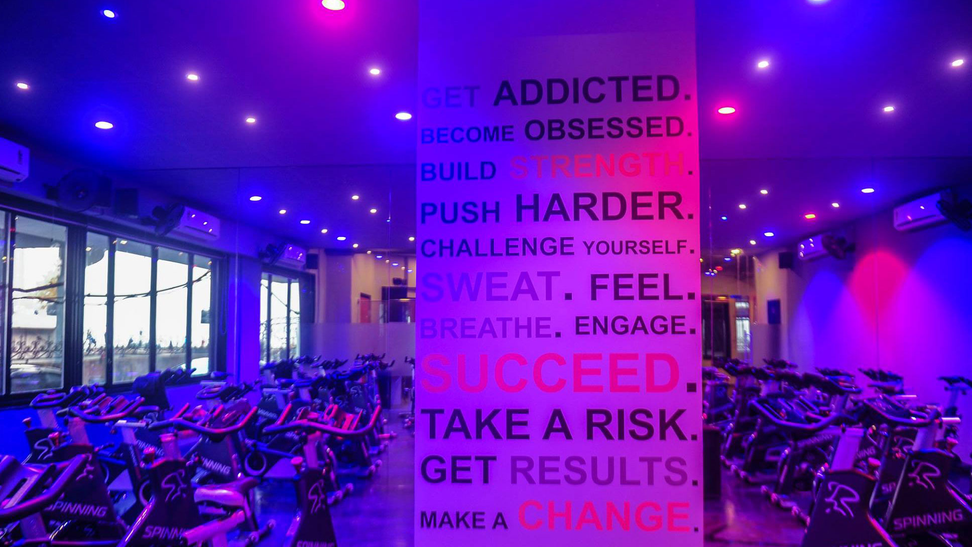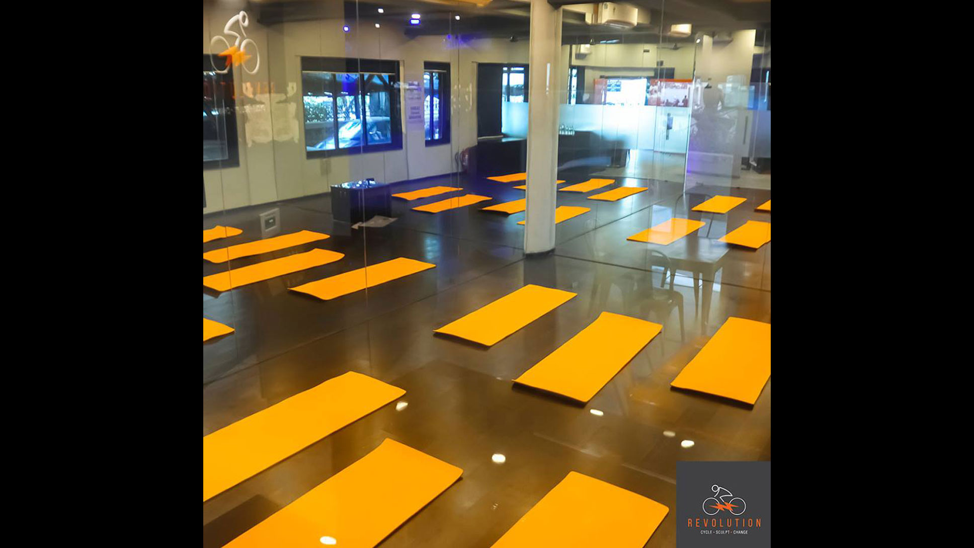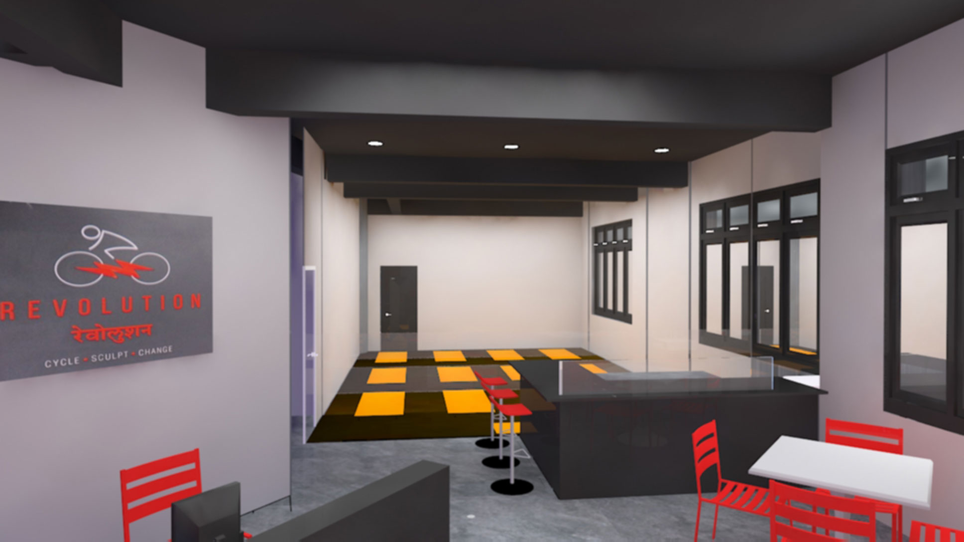 A contemporary indoor cycling and sculpting studio. The studio emphasizes clean lines for a pure aesthetic. In addition to a custom solid surface reception desk, juice bar in the reception lobby and custom locker rooms, the space is acoustically treated to sound proof the spinning studio where high energy music is played complete with strobe lights.
